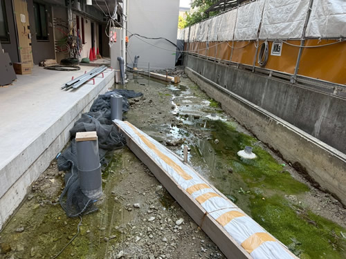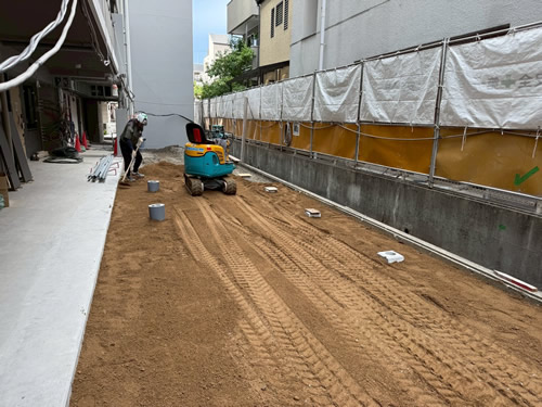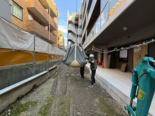 今回の現場は、マンションの裏側でトラックが入れないため、