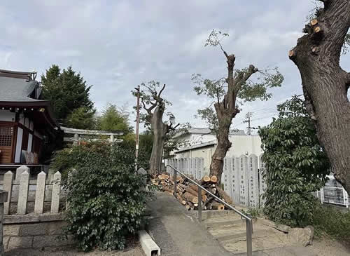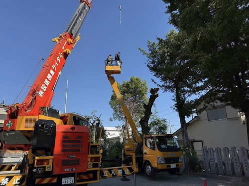 知り合いの重機屋さんに協力して頂き、剪定を行いました。